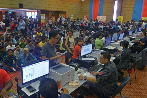 ![]() Người sử dụng lao động và người lao động bất hợp pháp xin giấy phép lao động tại trụ sở Bộ Di trú tại Putrajaya vào tối thứ năm. Ảnh: FOTOBERNAMA |