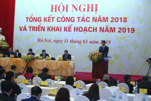 Thứ trưởng Bộ Giao thông Vận tải Nguyễn Ngọc Đông báo cao tại Hội nghị tổng kết năm 2018 và triển khai kế hoạch 2019 của Bộ Giao thông Vận tải diễn ra sáng 11/1, tại Hà Nội. Ảnh: Quang Toàn/BNEWS/TTXVN