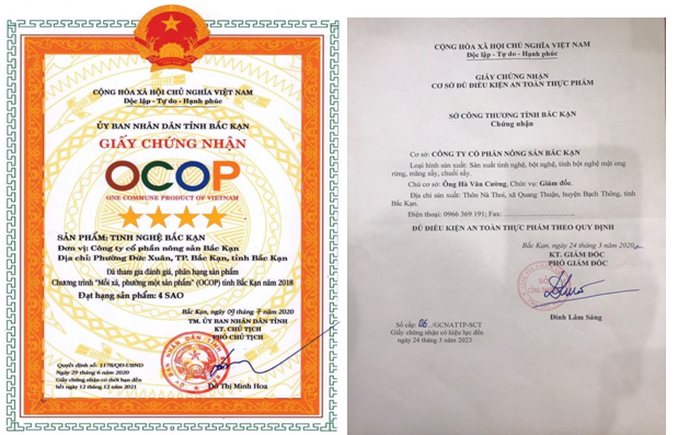 Tinh nghệ Bắc Kạn là thương hiệu duy nhất tại Việt Nam có được chứng nhận Organic do Tổ chức đánh giá hữu cơ uy tín nhất trên thế giới Control Union EU và USDA Organic cấp. Tinh nghệ Bắc Kạn là sản phẩm nông thôn tiêu biểu cấp Quốc gia năm 2019 do Bộ Công Thương trao tặng, sản phẩm vì sức khỏe cộng đồng và OCOP 4 sao. Với những gì đã đạt được, tinh nghệ Bắc Kạn là sản phẩm chất lượng, hiệu quả, là sự lựa chọn tốt cho sức khỏe người tiêu dùng; sản phẩm được đông đảo khách hàng trong nước và quốc tế tin tưởng lựa chọn sử dụng trong nhiều năm qua.
