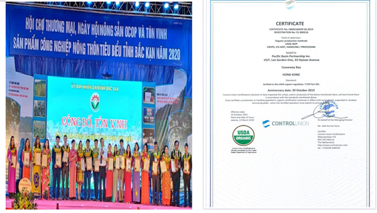 - Chứng nhận Organic các năm 2018, 2019 và năm 2020 do Control Union cấp và do USDA Organic cấp.